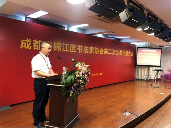 锦江区书法家协会第一届主席团主席程峰向大会作了《成都市锦江区书法家协会工作报告》,得到与会代表全体审议表决通过。
